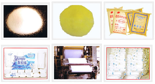 Yeyanfloc 的造纸分散剂是一种水溶性线性带支链的有机高分子聚合物,溶解速度快、能够完全溶解、粘度高。本产品用于纸品生产中,可以增加纸浆粘度、有效分散纤维和填料,抄出的纸均匀平滑有柔性无洞眼,该产品的加入还可以使抄纸性能稳定,抄纸时不易断纸和起粉末,同时能提高纸品的拉力及干湿强度并节约纸浆,出纸率提高 15 %,大大提高车速,适用于各类纸张,在卫生纸方面应用较多。